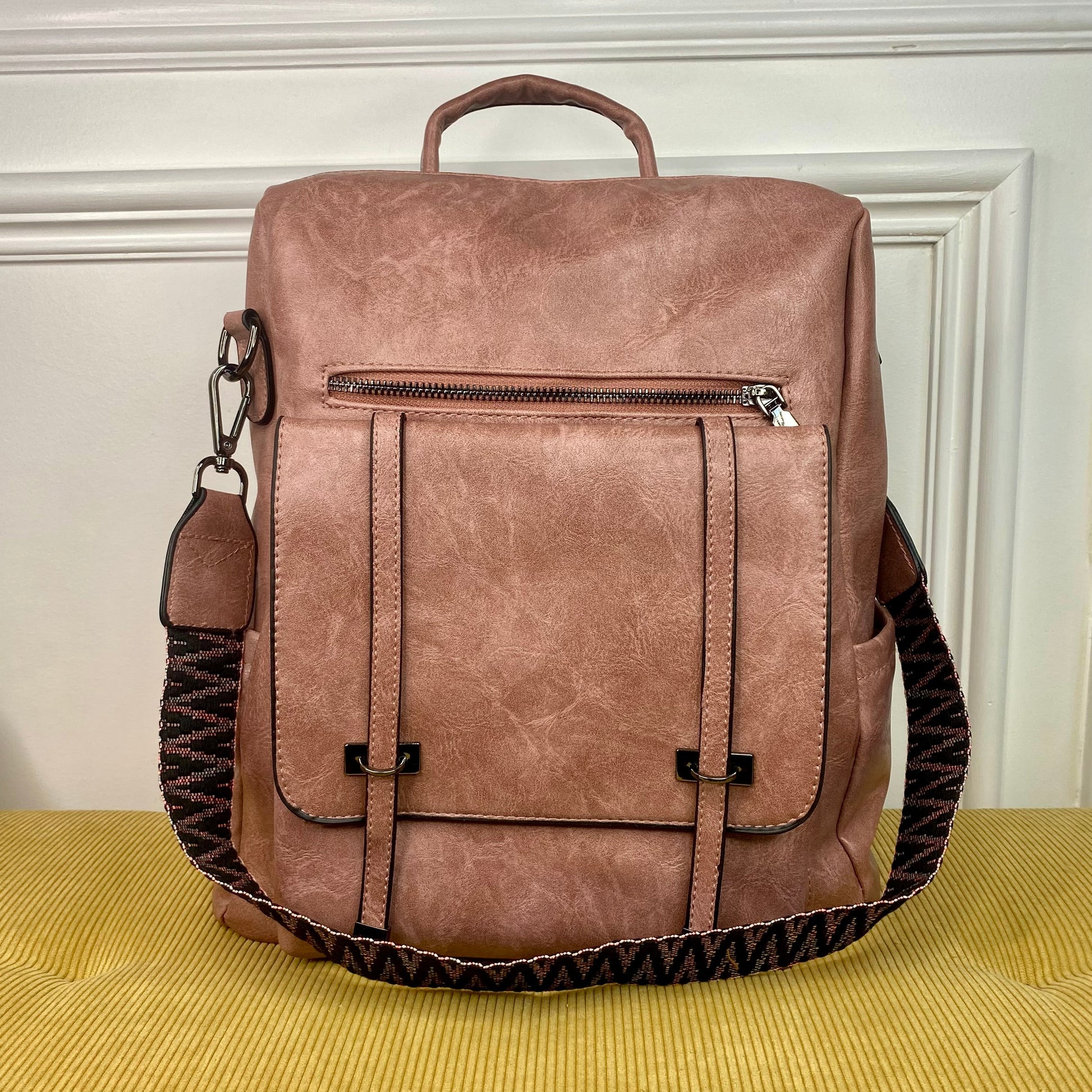 This gorgeous fashion backpack will be your new favorite! Make it a purse, bookbag, laptop bag, diaper bag, travel carry on, and so much more. Also comes with a removable shoulder strap.