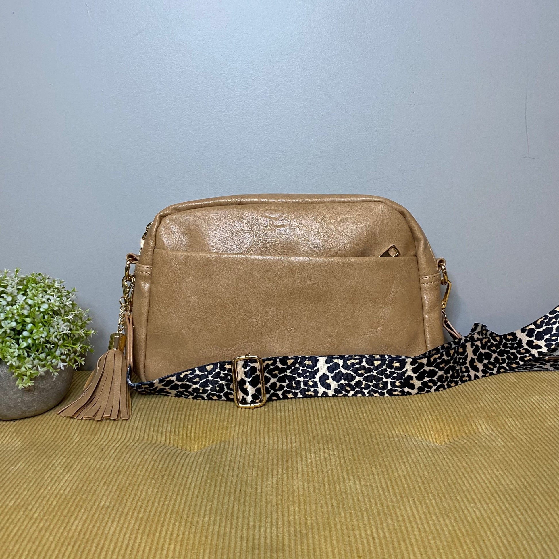 They feature 1 main zip compartment, as well as a front zip pocket for securely storing items! Make it a purse, travel bag, and so much more. Also comes with an animal print shoulder/crossbody strap.