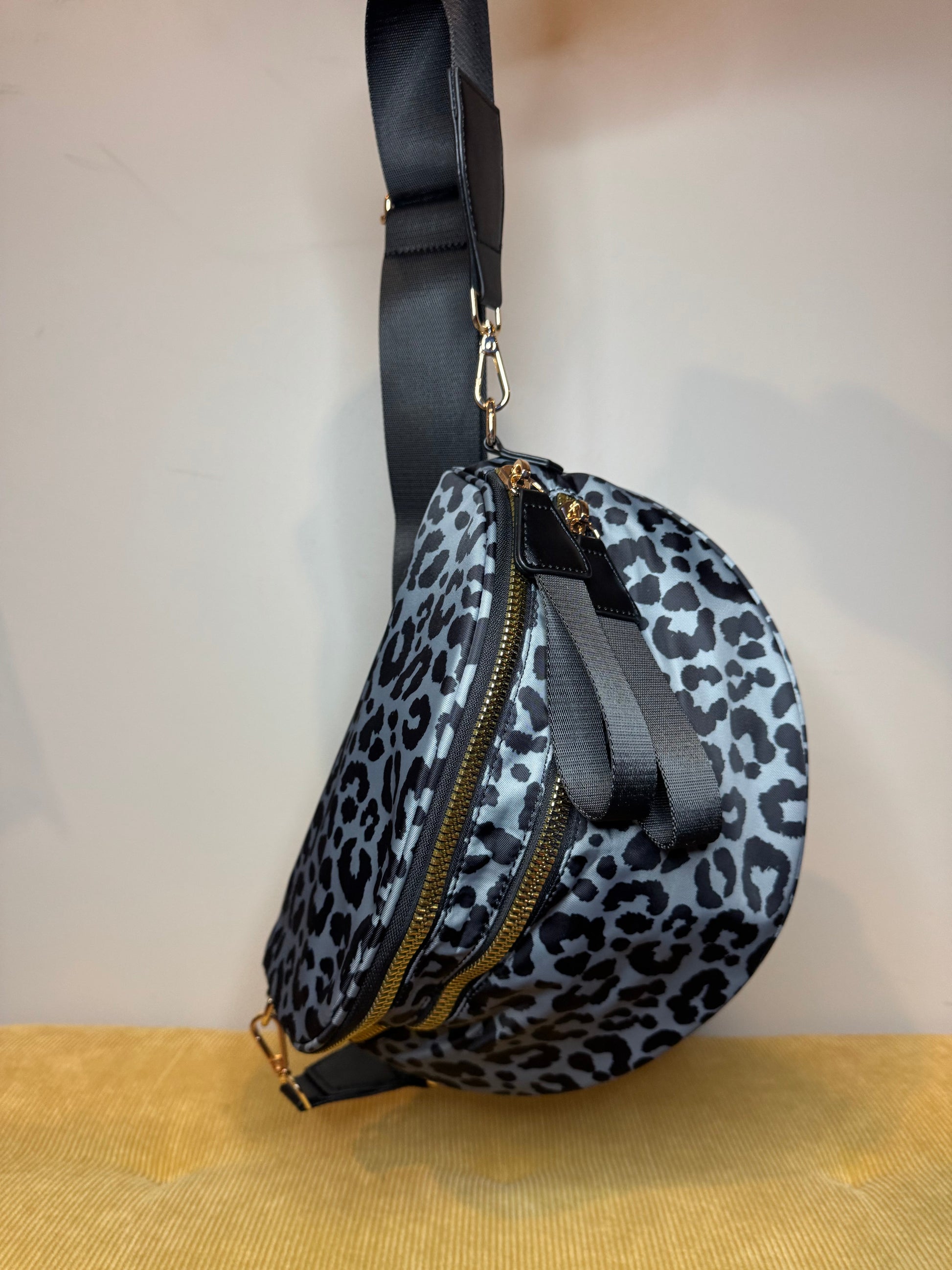 The Roni Nylon Crossbody - Animal Print Grey with Black - PREORDER
