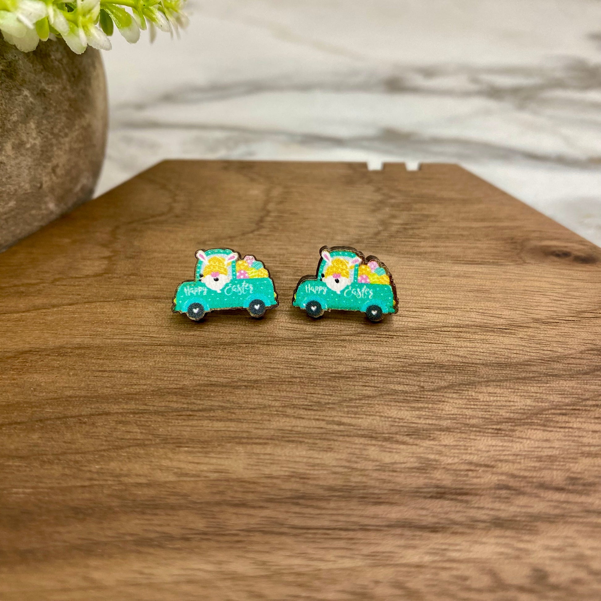 Wooden Stud Earrings - Easter - #3